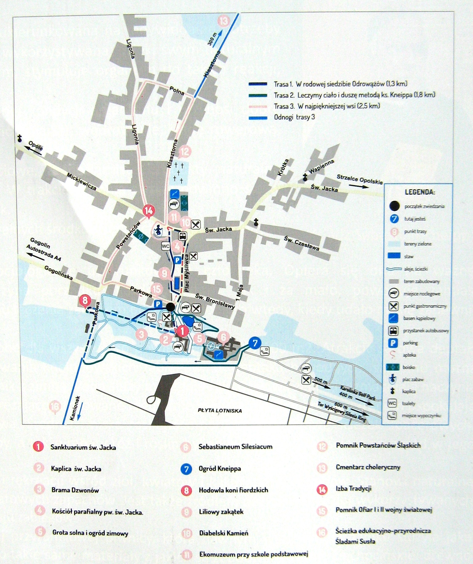 gdzie zaparkować, jak trafić na lotnisko, na tor wyścigowy Silesia Ring czy pole golfowe Karolinka Park.