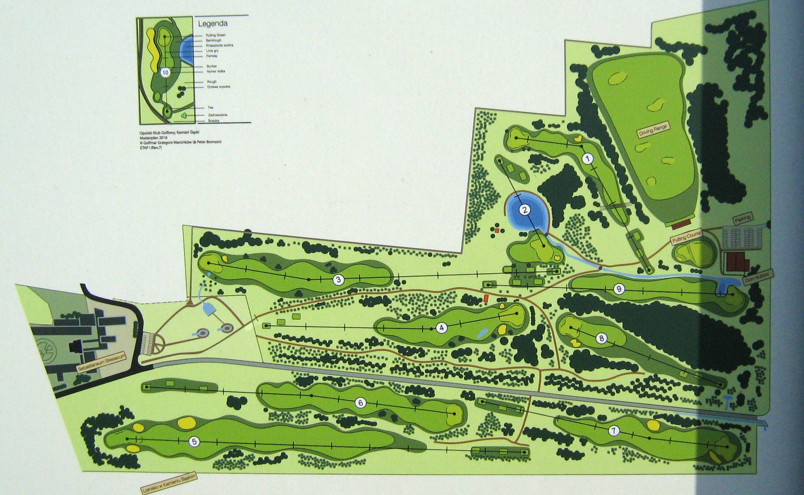Poniżej zamieszczona dokładna mapa pola golfowego ze wszystkimi dołkami.