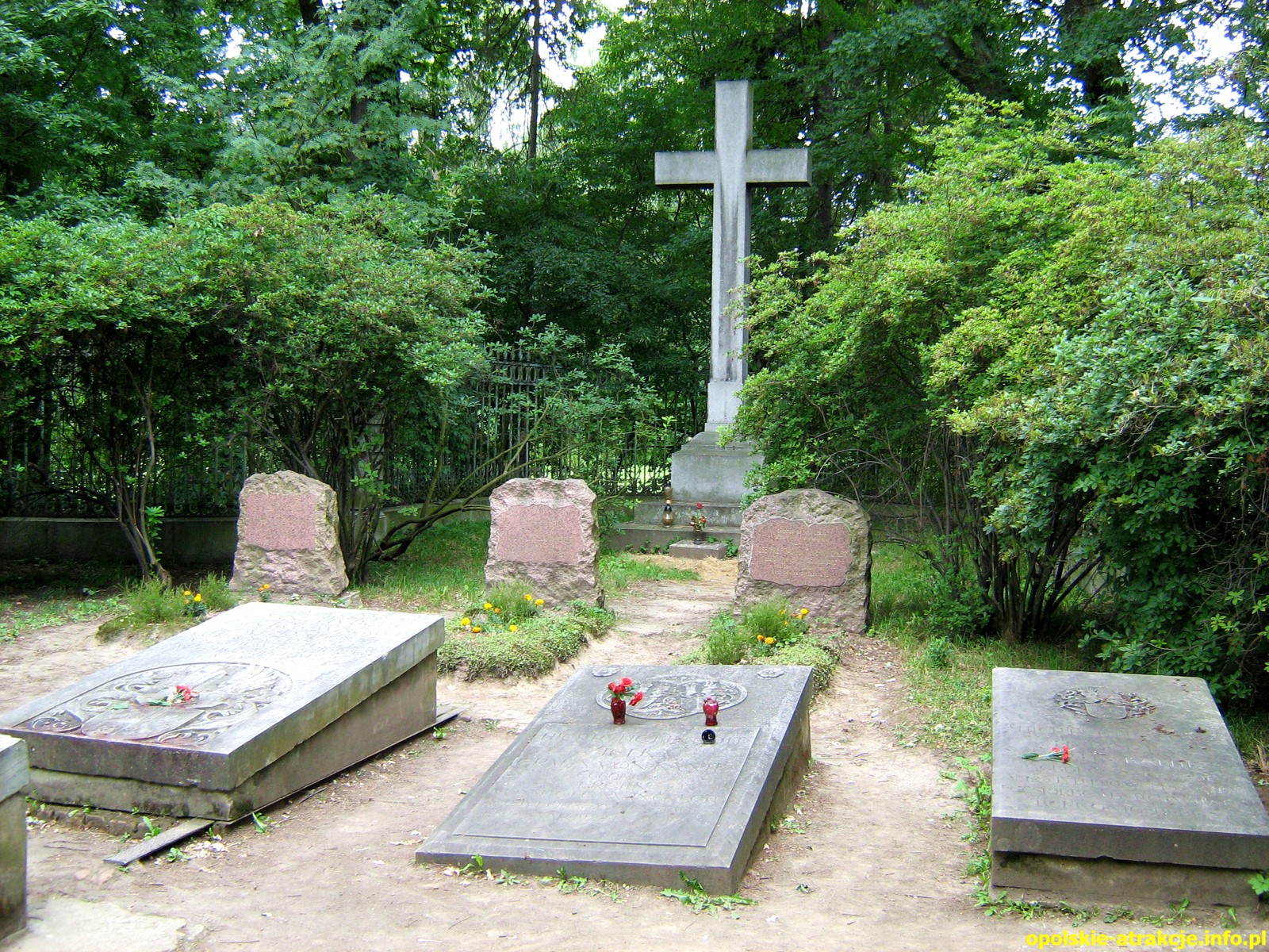 właściciele zamku Moszna pochowani są na cmentarzu w parku. Nekropolia