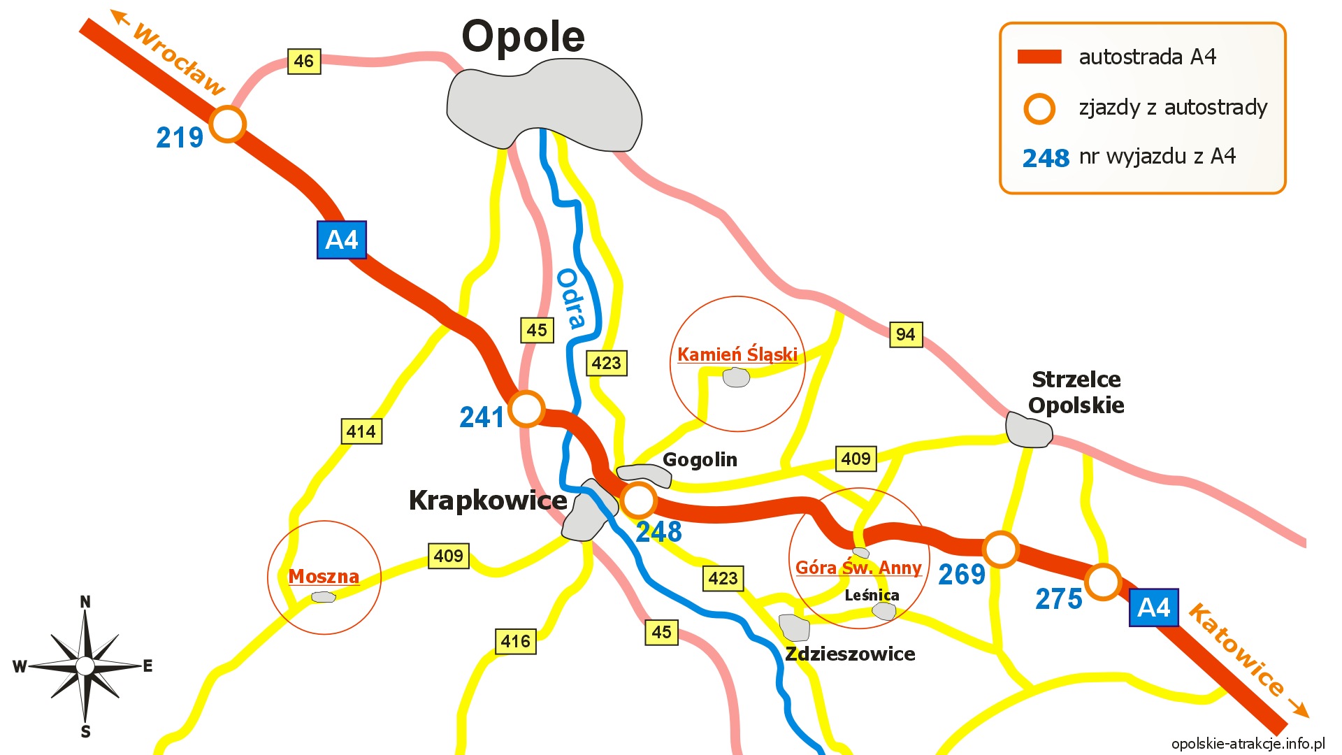 strony Katowic: należy zjechać z autostrady na Strzelce Opolskie i